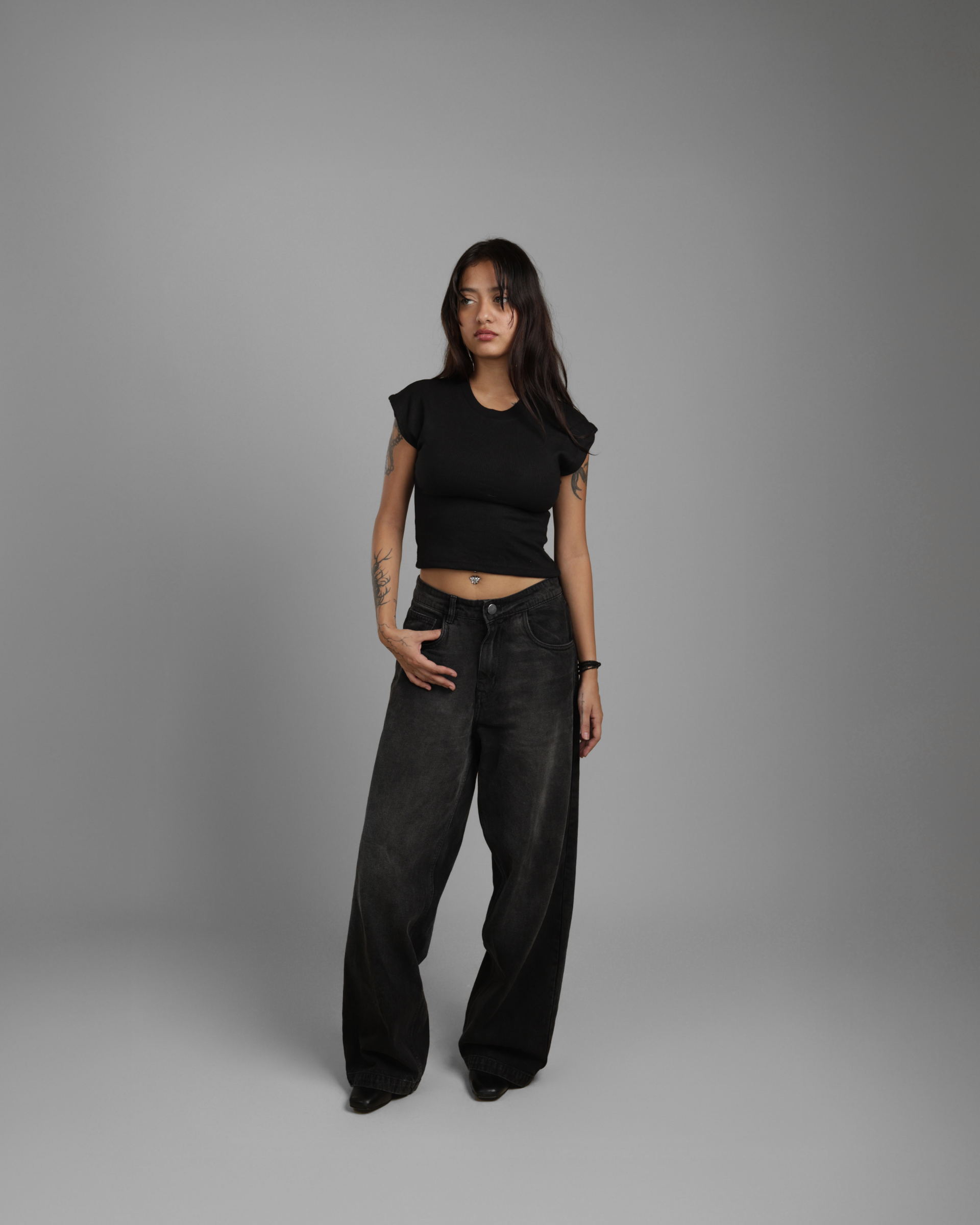 This is the silhouette of next-level denim. The Straight Baggy Fit is deliberately oversized for comfort but cut to hold a clean, structured line. Its deep charcoal black is finished with a faded grey touch, giving this powerful shape instant, worn-in character.